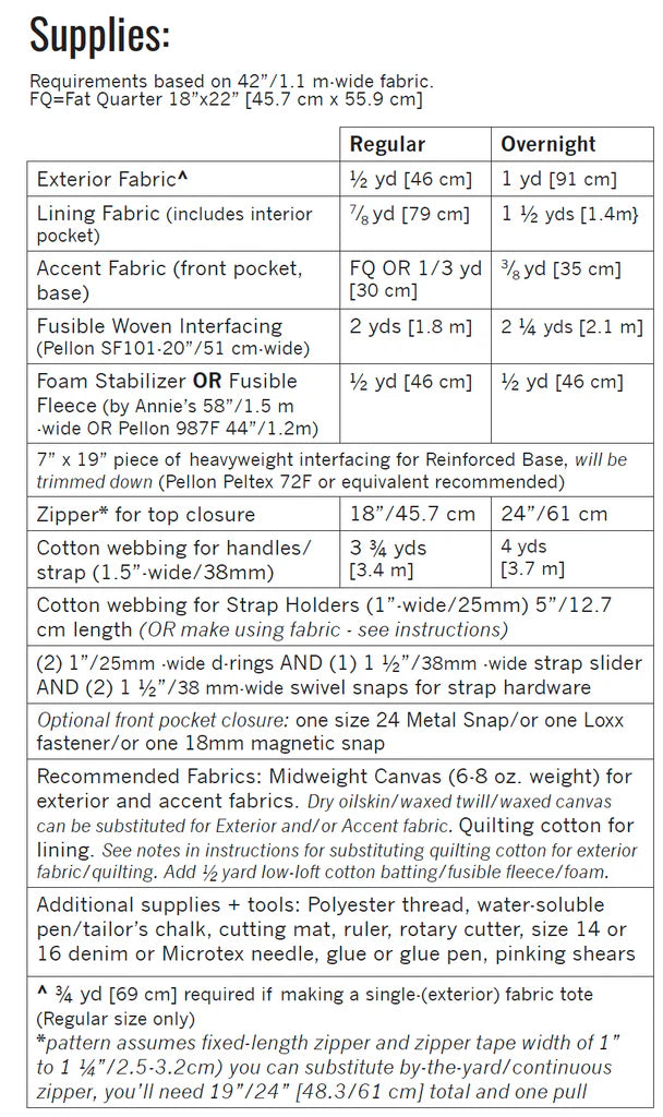 Noodlehead Patterns - Oxbow Tote (Regular & Overnight)